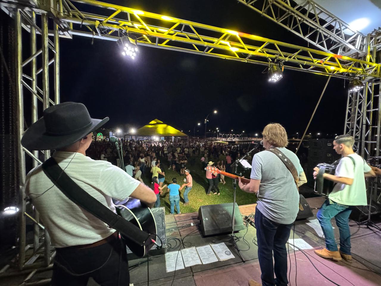 Encerrando a programação, a noite foi marcada por muita música e animação. O DJ Jhone Lopes abriu o palco com um repertório vibrante, preparando o público para o show principal. Às 20h, o grupo Pé de Cedro subiu ao palco e encantou a plateia com um espetáculo cheio de energia e tradição.